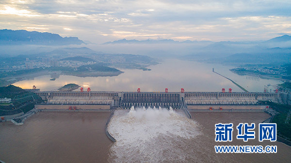 7月13日,三峽大壩開啟泄洪深孔下泄上游來水,騰出庫容。新華社發(fā)(鄭家裕 攝)