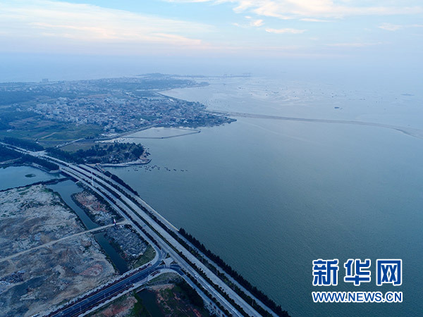 這是8月4日拍攝的福建向金門供水工程輸水管道出??跁x江圍頭灣(無人機(jī)拍攝)。新華社記者 姜克紅 攝