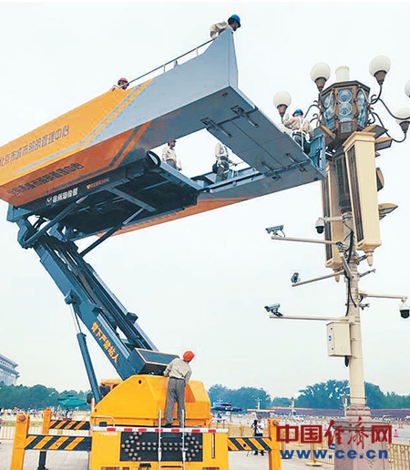 華燈車在檢修和清洗華燈。經(jīng)濟(jì)日?qǐng)?bào)-中國經(jīng)濟(jì)網(wǎng)記者 常 理攝
