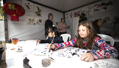 一墻之隔的生產(chǎn)車間占地2500平方米,分隔成兩部分,其中約九成面積采用傳統(tǒng)手工印花工藝,余下的空間則擺放著一臺(tái)大型數(shù)碼印花機(jī),工作起來(lái)幾乎沒(méi)有噪音。