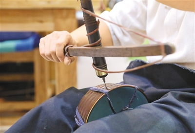 河北省非物質文化遺產項目代表性傳承人李軍航用金剛鉆為殘破瓷器打孔。梁子棟攝(新華社發(fā))