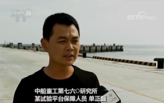 中船重工第七六O研究所某試驗平臺保障人員單正磊:“當時左右(晃動)都達到了15度,往左15度往右15度,(晃動)特別厲害,人在上面都站不穩(wěn)了?!?/p>