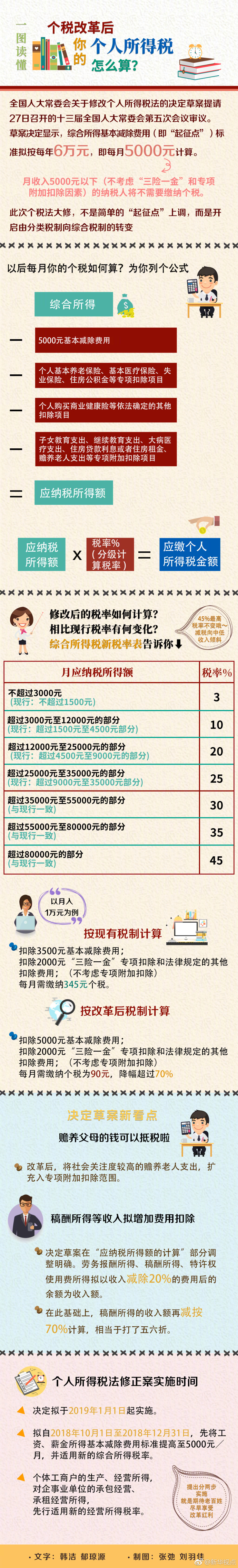 此次決定草案沿用了草案一審稿的內(nèi)容,維持3%到45%的新稅率級距不變。