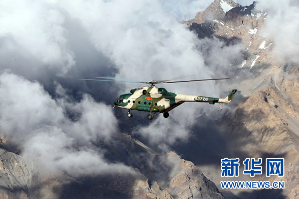 2016年7月20日,新疆軍區(qū)某陸航旅運(yùn)輸直升機(jī)一營(yíng)飛行員在高海拔邊防線執(zhí)行巡邏任務(wù)。新華社發(fā)(吳世科 攝)