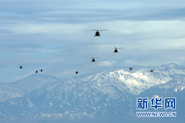 2018年5月25日,新疆軍區(qū)某陸航旅運(yùn)輸直升機(jī)一營(yíng)在高海拔地區(qū)開展協(xié)同訓(xùn)練。 新華社發(fā)(吳世科 攝)
