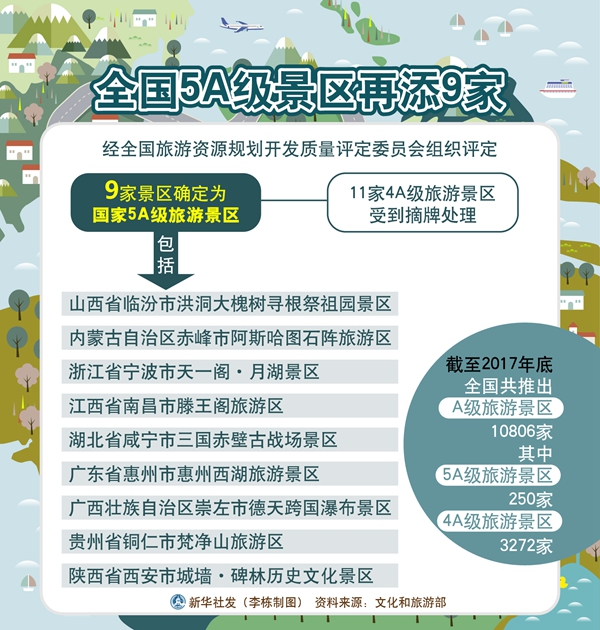 全國(guó)5A級(jí)景區(qū)再添9家 新華社發(fā) 李棟 制圖
