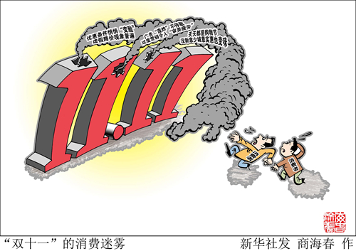 漫畫(huà):“雙十一”的消費(fèi)迷霧 新華社發(fā) 商海春 作