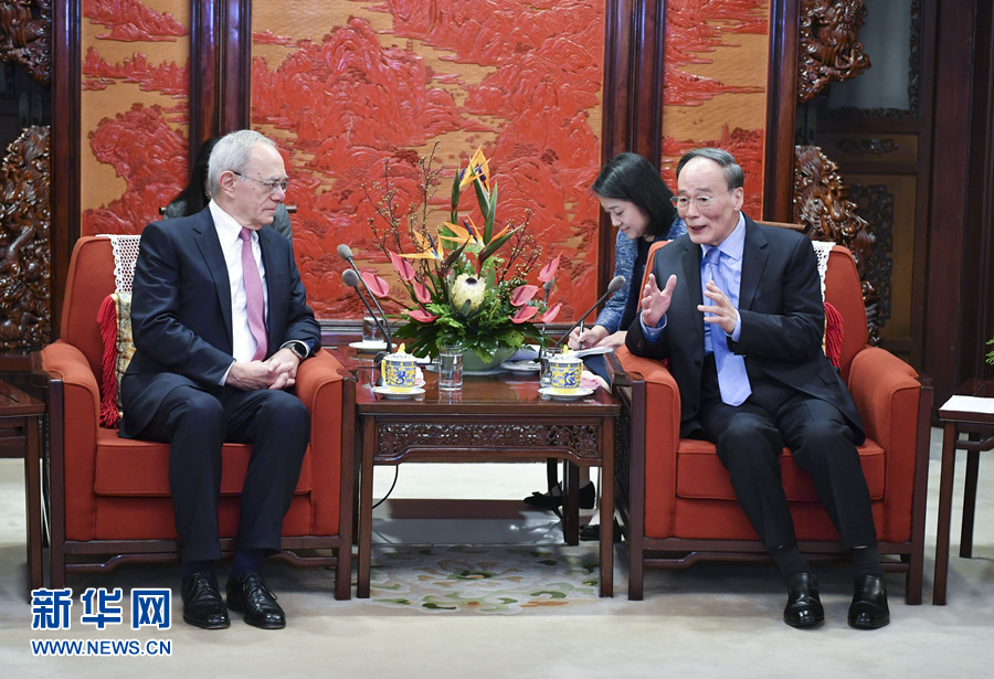 11月12日,國家副主席王岐山在北京中南海會見校長里夫率領(lǐng)的麻省理工學(xué)院理事會執(zhí)委會成員。 新華社記者 殷博古 攝