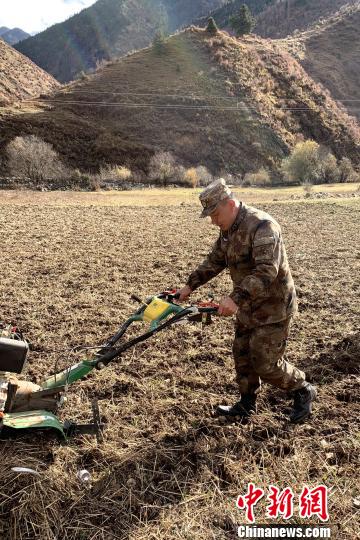 農(nóng)田不翻耕會(huì)影響來年莊稼收成,村民頓珠今年冬天因生病臥床,無法下地干活,便民服務(wù)隊(duì)官兵得知情況后,主動(dòng)幫助他翻耕農(nóng)田,10余名官兵現(xiàn)學(xué)現(xiàn)做,用一天時(shí)間將頓珠家的農(nóng)田全部翻耕完成。