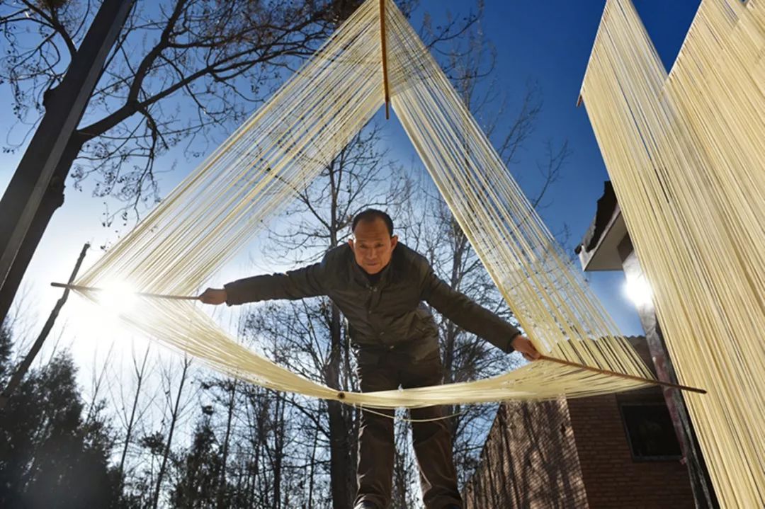 2018-12-13,河南靈寶。川口鄉(xiāng)閆謝村李潤(rùn)澤正在自家院子里制作掛面。作者:紫色光