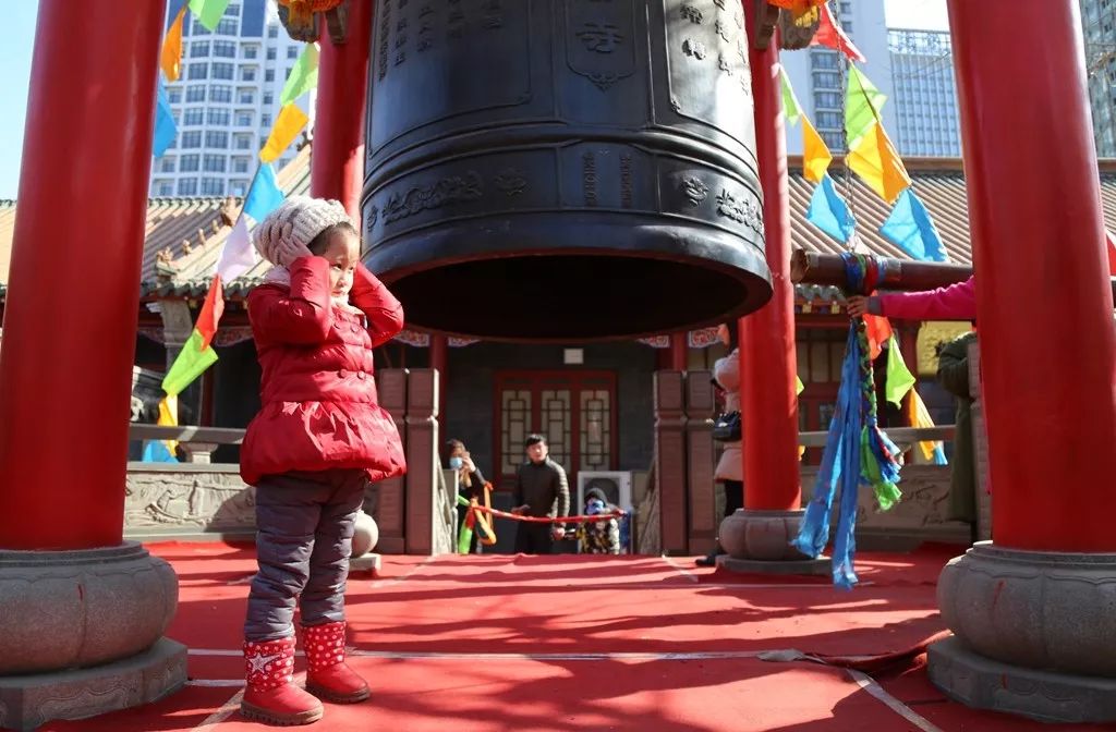 2018-02-16,遼寧沈陽。廟會上,人們敲響祈福的鐘聲。作者:老頑童