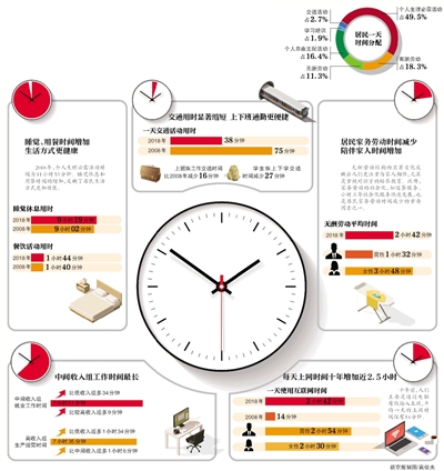 2018年,國(guó)家統(tǒng)計(jì)局組織開(kāi)展了第二次全國(guó)時(shí)間利用調(diào)查,該調(diào)查覆蓋11個(gè)?。ㄊ校?,采用國(guó)家統(tǒng)一的住戶收支與生活狀況調(diào)查樣本框,共抽樣調(diào)查20226戶48580人。昨日,《2018年全國(guó)時(shí)間利用調(diào)查公報(bào)》出爐,結(jié)果顯示,與2008年相比,中國(guó)居民的時(shí)間分配結(jié)構(gòu)發(fā)生了較大變化,睡覺(jué)休息和用餐時(shí)間增加,收入越低的居民看電視時(shí)間越多,每天上網(wǎng)時(shí)間增加2小時(shí)28分鐘。