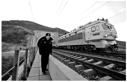 56歲的老民警朱效國已經(jīng)有些駝背了,但精神狀態(tài)很好。他介紹,下納嶺特大橋全長3.8公里,橋離地面高度約50米,恐高的人可巡不完線路。冬季天冷倒不怕,就怕刮風(fēng),橋太高了,很危險。只要不刮風(fēng)就是好天氣。我們巡線的目的就是,一是看線路上的設(shè)備有沒有損壞的,另一個就是看看有沒有危害火車安全的,有沒有山上滾下的落石和其他雜物,以保障列車通行安全。