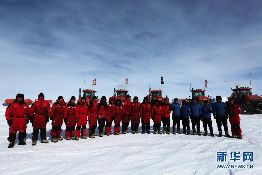 2月4日農(nóng)歷大年三十,部分內(nèi)陸隊員在南極冰蓋上合影。2月5日大年初一,中國第35次南極科學(xué)考察隊兩支內(nèi)陸隊——昆侖隊和泰山隊的37名隊員,繼續(xù)以中國南極中山站為目標(biāo),奔馳在茫茫的南極內(nèi)陸冰蓋上,在冰天雪地中度過了農(nóng)歷豬年第一天。新華社記者 劉詩平 攝