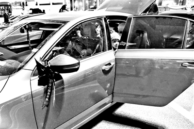 2月9日深夜11點,由“雙閃車隊”和西站地區(qū)志愿者40多人組成的“藍(lán)絲帶”愛心服務(wù)車隊在西站停車場集結(jié)。23時15分,西站負(fù)二層出租車調(diào)度站等待出租車的旅客排起了長隊。盡管不停有保點的出租車前來支援,但和旅客的數(shù)量相比仍然相差懸殊。
