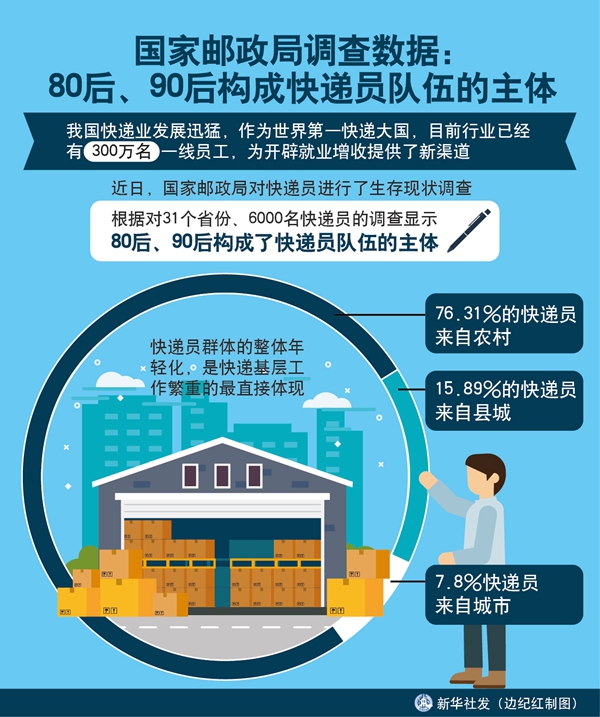 近日,國(guó)家郵政局對(duì)快遞員進(jìn)行了生存現(xiàn)狀調(diào)查,根據(jù)對(duì)31個(gè)省份、6000名快遞員的調(diào)查顯示,80后、90后構(gòu)成了快遞員隊(duì)伍的主體??爝f員群體的整體年輕化,是快遞基層工作繁重的最直接體現(xiàn)。76.31%的快遞員來(lái)自農(nóng)村,15.89%的快遞員來(lái)自縣城,僅有7.8%來(lái)自城市。