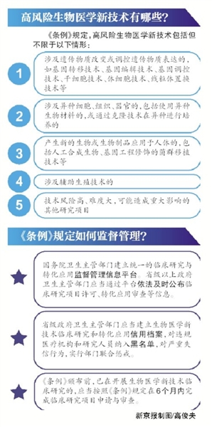 《條例》規(guī)定,高風(fēng)險(xiǎn)生物醫(yī)學(xué)新技術(shù)包括但不限于以下情形: