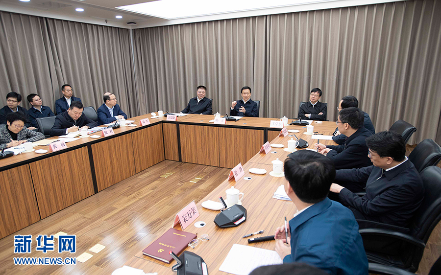 3月18日,中共中央政治局常委、國務院副總理韓正到住房和城鄉(xiāng)建設部調研并主持召開座談會。 新華社記者 李濤 攝