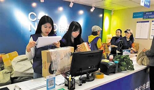 左圖 四川外國語大學(xué)綜合物流服務(wù)中心內(nèi),工作人員精準記錄著快遞末端的流通信息。
