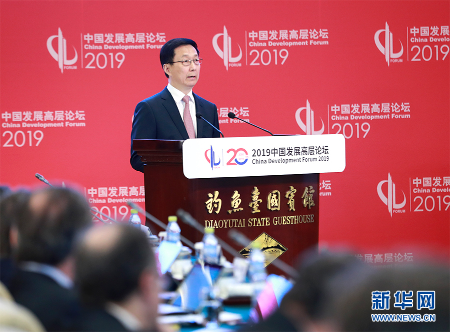 新華社北京3月24日電 中國(guó)發(fā)展高層論壇2019年年會(huì)24日上午在北京開(kāi)幕。中共中央政治局常委、國(guó)務(wù)院副總理韓正出席開(kāi)幕式并致辭。