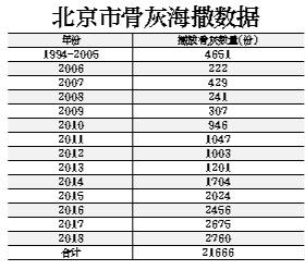 目前,以骨灰海葬、骨灰自然葬為代表的節(jié)地生態(tài)葬式已成為北京市骨灰安葬的主流。本市骨灰海葬活動(dòng)自1994年實(shí)施以來(lái),迄今已順利組織了485次,播撒骨灰21666份,服務(wù)逝者家屬67887人次,僅2018年就組織骨灰撒?;顒?dòng)70批次,播撒骨灰2760份,參加活動(dòng)家屬11160人,在全國(guó)居于領(lǐng)先地位?!笆濉蹦腔液T崃款A(yù)計(jì)將達(dá)到北京市年火化總量的4%。