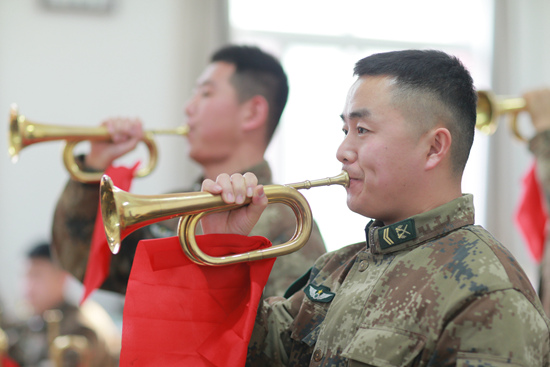 “再來(lái)一遍?!表n軍杰笑得有些不好意思,但絲毫沒(méi)有停手的樣子。他享受吹響軍號(hào)的那一刻,盡管只要短短十幾秒,兩腮就會(huì)酸痛。好在經(jīng)過(guò)一段時(shí)間,吹出音已經(jīng)不是問(wèn)題,從練習(xí)發(fā)聲到練習(xí)音準(zhǔn),他期待著下一個(gè)飛躍。