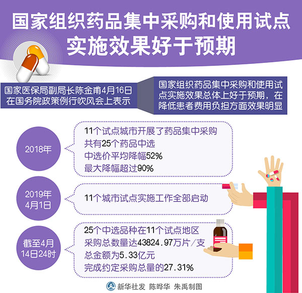 圖表:國家組織藥品集中采購和使用試點(diǎn)實(shí)施效果好于預(yù)期 新華社發(fā) 陳曄華 朱禹 制圖