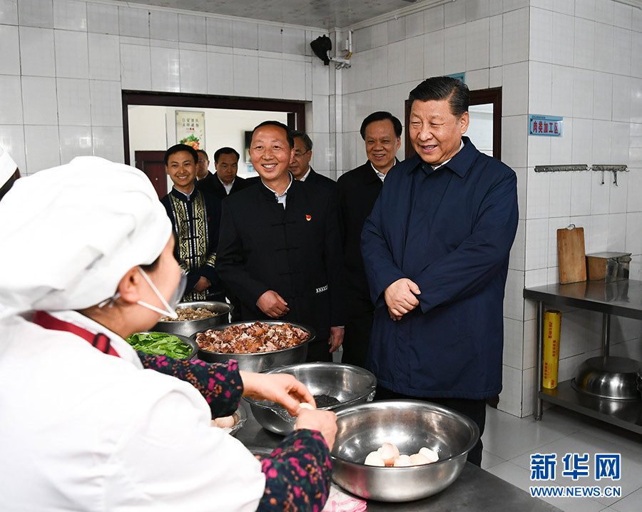 考察一所小學,他走進師生食堂,仔細察看餐廳、后廚,了解貧困學生餐費補貼和食品安全衛(wèi)生情況;