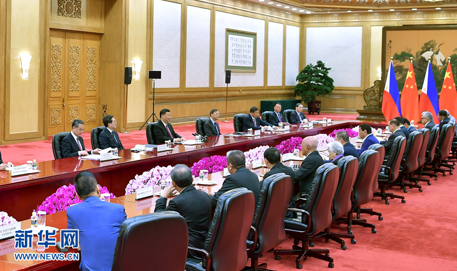 4月25日,國(guó)家主席習(xí)近平在北京人民大會(huì)堂會(huì)見菲律賓總統(tǒng)杜特爾特。 新華社記者 李濤 攝