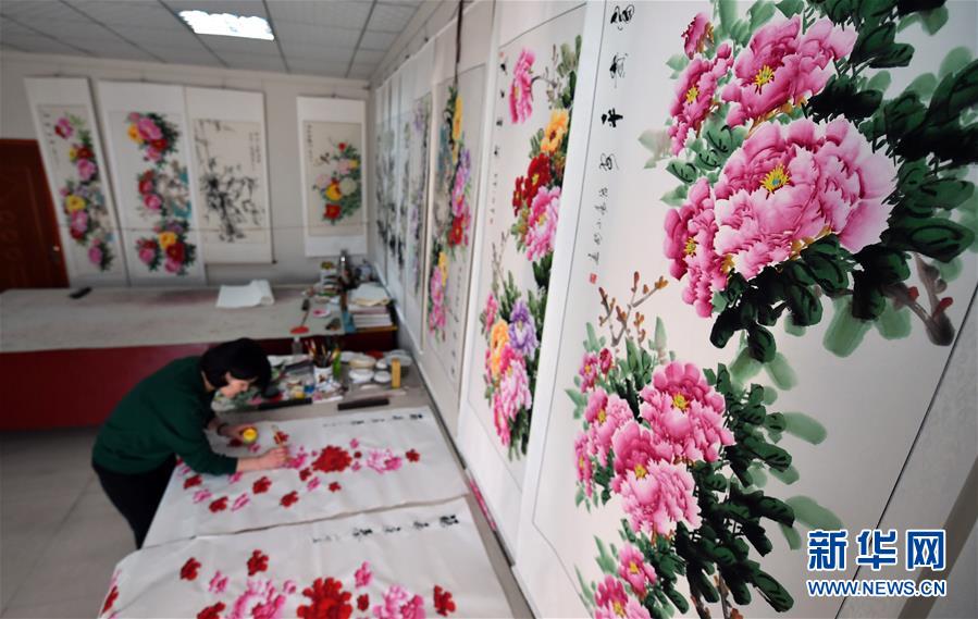 作畫近30年的郭亞修認(rèn)為鄉(xiāng)土地域和人文環(huán)境成就了平樂,“平樂人愛牡丹、畫牡丹,牡丹寓意富貴、吉祥,平樂就從牡丹里討到了名氣和財(cái)氣。” 如今,平樂社區(qū)有千余名農(nóng)民畫家以畫牡丹為生。