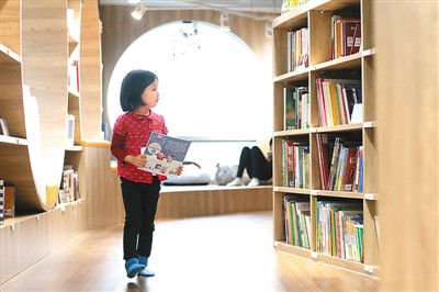 繪本圖書館里,孩子坐在家長身旁,捧著手中的書讀得津津有味。場館設(shè)計之初,王慧瑾親自“操刀”,定下了原木簡約風(fēng)格的主基調(diào),就是為了滿足家長的高品質(zhì)審美需求,力圖打造一個家長和孩子都可以樂在其中的悠閑天地。