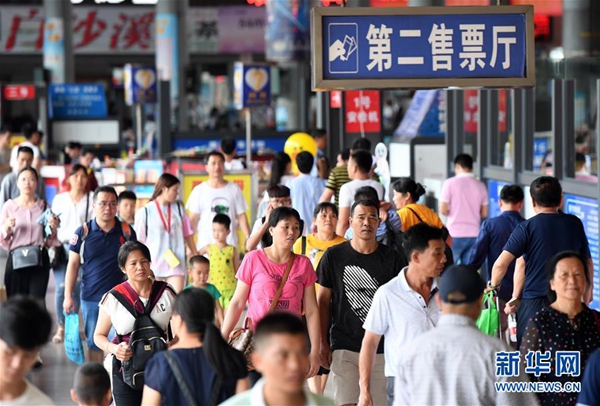 6月9日,在廣西南寧市埌東汽車站,旅客進(jìn)入候車室。當(dāng)日是端午小長假最后一天,廣西南寧市客運站迎來客流返程高峰。新華社記者 陸波岸 攝