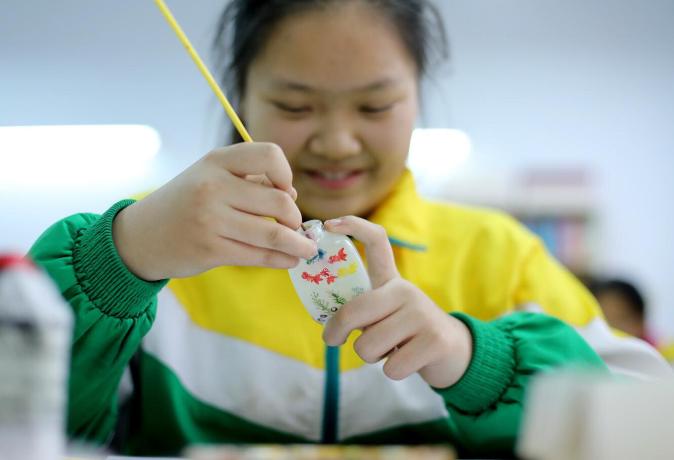 近年來,河北省衡水市珍寶街小學(xué)將當(dāng)?shù)氐膰?guó)家級(jí)非物質(zhì)文化遺產(chǎn)項(xiàng)目衡水內(nèi)畫引入校園,開設(shè)校本課程,并成立“內(nèi)畫工藝坊”興趣社團(tuán),在豐富校園文化生活的同時(shí),讓學(xué)生們近距離感受非遺的魅力,弘揚(yáng)和傳承傳統(tǒng)文化。
