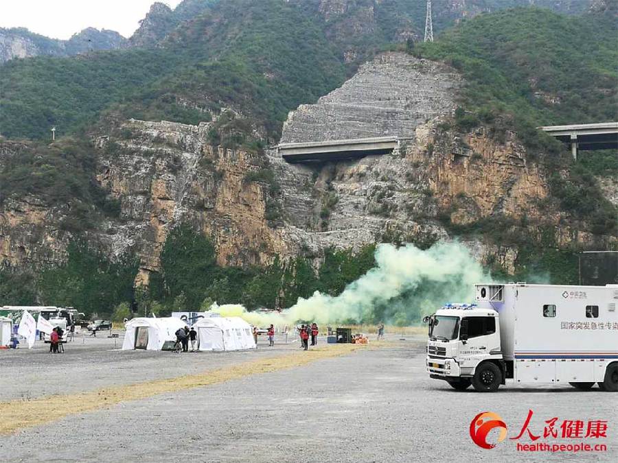 演練現(xiàn)場(chǎng)共調(diào)集緊急醫(yī)學(xué)救援、突發(fā)急性傳染病防控、突發(fā)中毒事件處置3類6支國家衛(wèi)生應(yīng)急隊(duì)伍,動(dòng)用制式衛(wèi)生應(yīng)急車輛150余臺(tái)、模塊化醫(yī)療救治帳篷40余頂、救援直升機(jī)1架,共有京津冀22家醫(yī)療衛(wèi)生單位的330余人參加了演練。