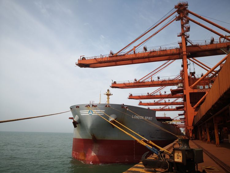 數(shù)十公里外,渤海海岸,曹妃甸港,繁忙碼頭。40萬噸鋼鐵巨獸穿行波瀾壯闊的太平洋奔達(dá)這里,卸下如山的礦石。