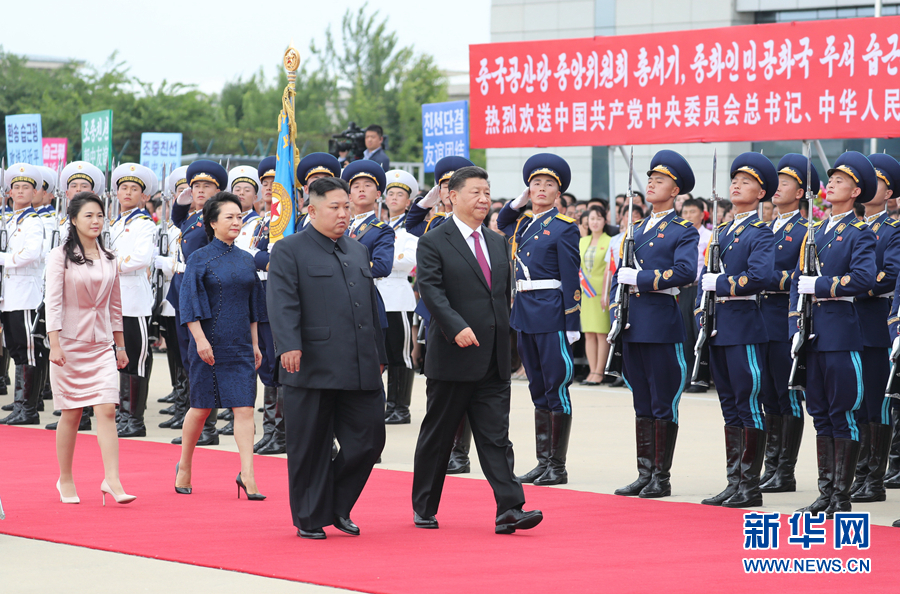 6月21日,中共中央總書記、國家主席習(xí)近平結(jié)束對朝鮮的國事訪問離開平壤回國。離開前,習(xí)近平和夫人彭麗媛出席朝鮮勞動(dòng)黨委員長、國務(wù)委員會委員長金正恩和夫人李雪主在機(jī)場舉行的歡送儀式。新華社記者 黃敬文 攝