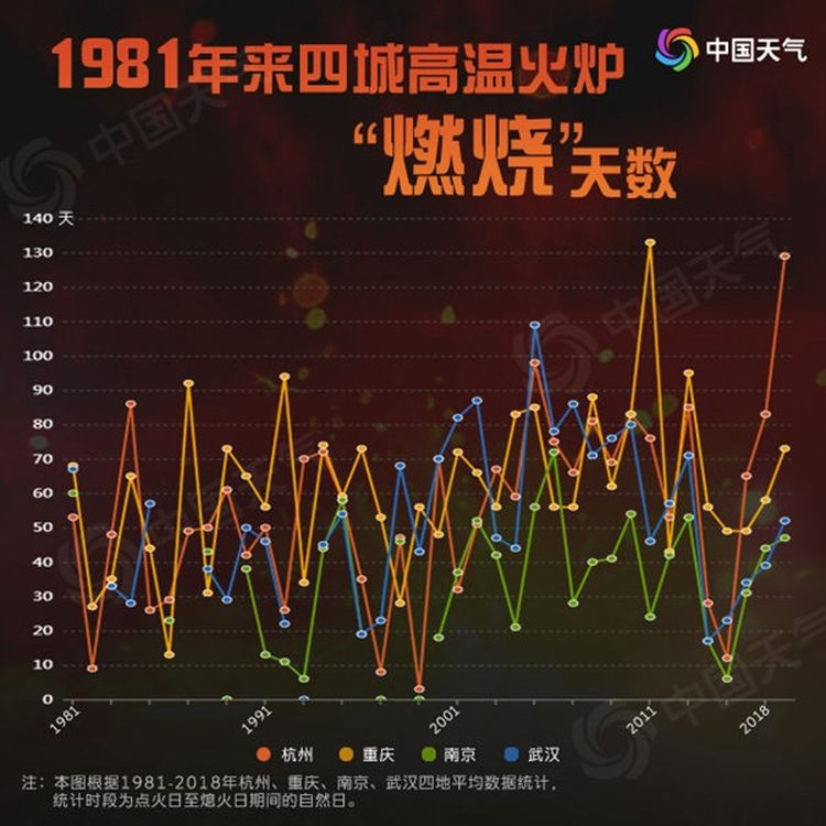 高溫火力全開,人人都覺(jué)得自己所在地是火爐。這里先以長(zhǎng)江沿線的重慶、武漢、南京、杭州四城為例。