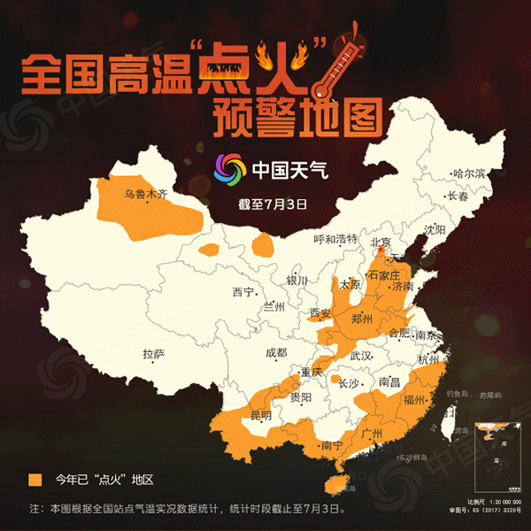 小暑將至,入伏在即,今夏高溫競(jìng)賽即將白熱化!北方憑多輪燒烤式高溫?fù)屨枷葯C(jī),南方雖因雨水頻繁稍有落后,但也將在接下來(lái)的三伏期間蓄力一搏。遭遇高溫蒸烤,我們只能認(rèn)慫保命?中國(guó)天氣網(wǎng)獨(dú)家推出全國(guó)高溫“點(diǎn)火”預(yù)警地圖,告訴你高溫火爐一般何時(shí)“點(diǎn)著”、何時(shí)“熄滅”,讓你做“火爐”里最美味的仔。