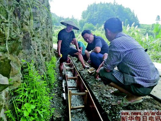 大江口鎮(zhèn)虎皮溪村是一個省級貧困村,大大小小22個自然院落分散在大山里。長期以來,由于水渠廢棄、年輕人外出打工,很多農(nóng)田荒蕪,這里曾經(jīng)是當?shù)刈罡F的村子之一。今年,湖南省社科聯(lián)扶貧工作隊和村民們開會商議,將硬化水渠作為“頭號工程”。