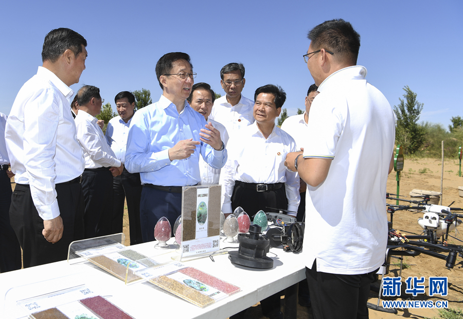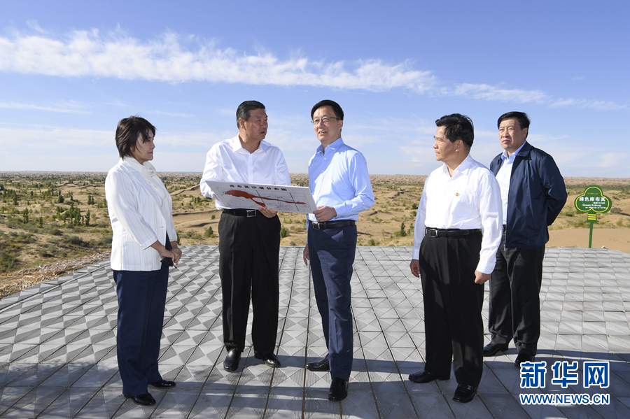 8月26日至27日,中共中央政治局常委、國務(wù)院副總理韓正到內(nèi)蒙古自治區(qū)鄂爾多斯市,就庫布其沙漠防沙治沙和生態(tài)建設(shè)情況進(jìn)行調(diào)研。這是8月27日,韓正在那日沙科技植樹區(qū),考察運(yùn)用技術(shù)創(chuàng)新植樹治沙工作開展情況。新華社記者 張領(lǐng) 攝