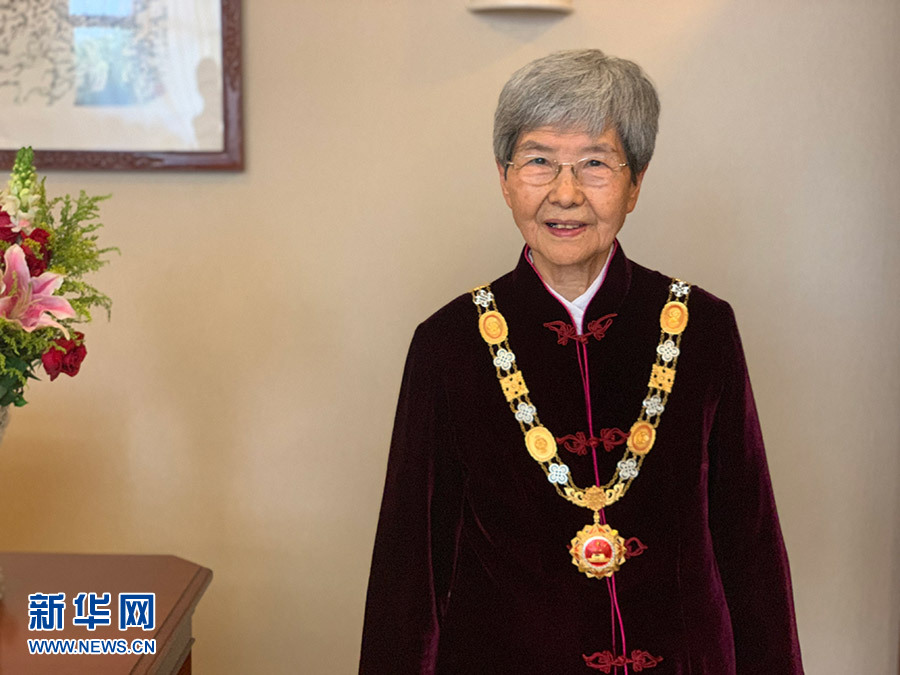 佩戴國(guó)家榮譽(yù)稱(chēng)號(hào)獎(jiǎng)?wù)碌姆\詩(shī)(9月29日攝)。新華社發(fā)(敦煌研究院供圖)