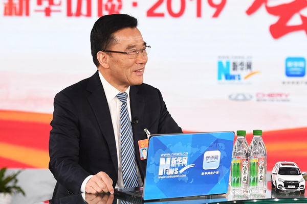 3月8日,全國(guó)人大代表、明陽智慧能源董事長(zhǎng)張傳衛(wèi)做客新華網(wǎng)。新華網(wǎng) 李相博 攝