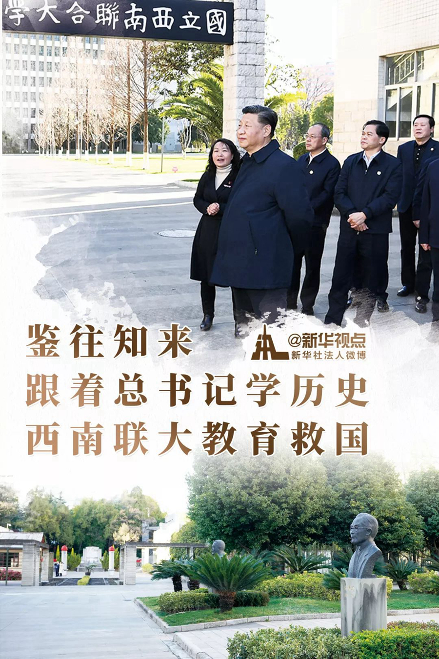 正在云南考察的習(xí)近平總書記20日下午來到國立西南聯(lián)合大學(xué)舊址,參觀西南聯(lián)大博物館等,了解抗戰(zhàn)期間西南聯(lián)大師生教書救國、讀書報國的光榮歷史。