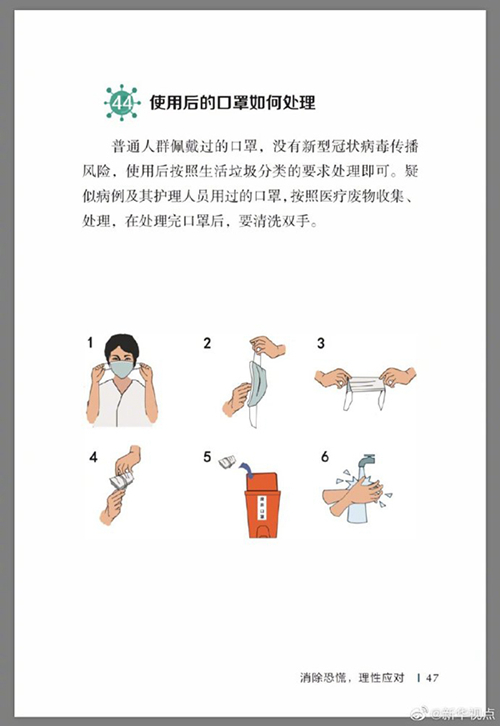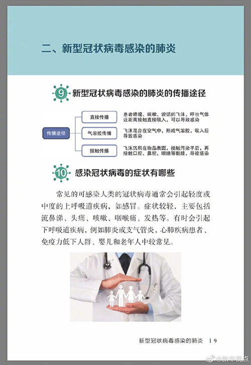 中國(guó)疾病預(yù)防控制中心編寫(xiě)的《新型冠狀病毒感染的肺炎公眾防護(hù)指南》,日前出版發(fā)行。此書(shū)聚焦公眾個(gè)人與家庭防護(hù)、居家醫(yī)學(xué)觀(guān)察、理性就醫(yī)、心理疏導(dǎo)等防治細(xì)節(jié),通過(guò)問(wèn)答形式解讀新型冠狀病毒感染的肺炎有關(guān)問(wèn)題疑惑,引導(dǎo)公眾正確認(rèn)識(shí),積極做到防治結(jié)合、科學(xué)防護(hù)、消除恐慌、理性應(yīng)對(duì)。此書(shū)包括圖書(shū)、電子書(shū)、網(wǎng)絡(luò)版讀物等多種形式,第一批圖書(shū)已緊急送往武漢抗擊疫情第一線(xiàn),電子書(shū)、網(wǎng)絡(luò)版讀物在學(xué)習(xí)強(qiáng)國(guó)、健康中國(guó)、人衛(wèi)健康、掌閱等多個(gè)網(wǎng)絡(luò)平臺(tái)、微信公眾號(hào)公益?zhèn)鞑ィ槿珖?guó)各地提供可印制的PDF版本。(記者史競(jìng)男;圖片來(lái)自《新型冠狀病毒感染的肺炎公眾防護(hù)指南》)
