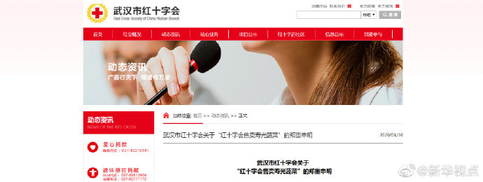 關于目前網(wǎng)絡上“山東壽光援助武漢350噸蔬菜,武漢市紅十字通過超市低價售賣”一事,武漢市紅十字會發(fā)表申明,詳情如下↓(記者王鵬) ????