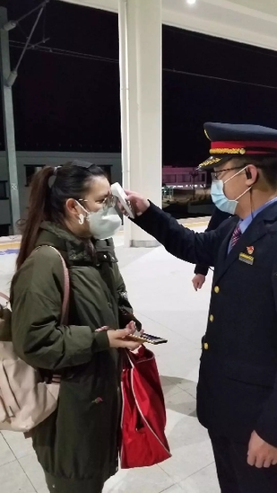 9時54分,D785次列車到達昆明南站,昆明南站的工作人員再次給她測了體溫沒問題后,立即帶她去找昆明南開往南京南的G1540次列車的列車長張峻豪。10時20分,郎冰凝坐上了G1540次列車奔向武漢。