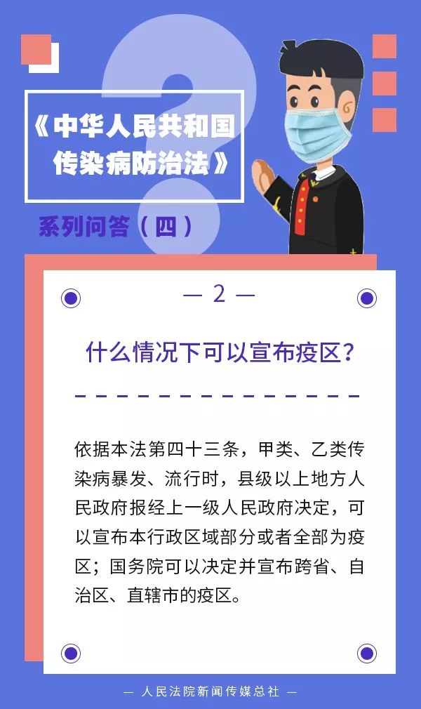 當前,新型冠狀病毒感染肺炎疫情蔓延,正嚴重影響著社會正常生產(chǎn)生活秩序。傳染病防治關(guān)系到每一個人的生命健康。面對傳染病的肆虐,如何利用法律武器來抗擊疫情?您對傳染病防治法知多少?小編將為您作出系列介紹。今天推出系列問答之四,敬請關(guān)注!