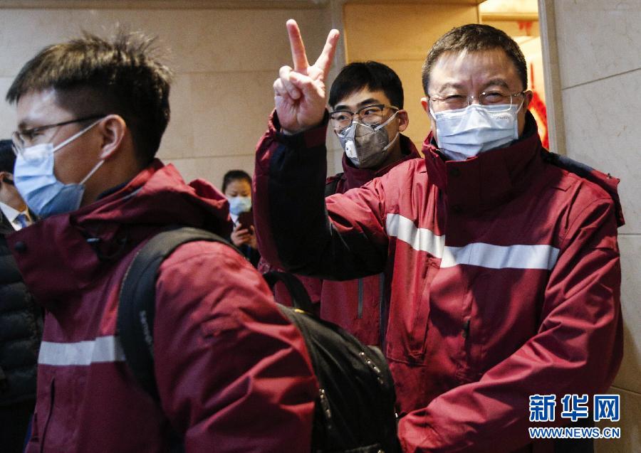 2月1日,中日友好醫(yī)院黨委書記周軍(右一)在出發(fā)前做出勝利的手勢。當(dāng)日,為進(jìn)一步加強(qiáng)武漢新型冠狀病毒感染的肺炎危重癥患者救治工作,國家衛(wèi)生健康委緊急組派中日友好醫(yī)院、北京大學(xué)第一醫(yī)院、北京大學(xué)人民醫(yī)院、北京大學(xué)第三醫(yī)院院長或書記帶領(lǐng)本院重癥醫(yī)學(xué)科主任、護(hù)士長等專業(yè)人員奔赴武漢,和前期組派的專業(yè)醫(yī)務(wù)人員一起開展危重癥患者救治工作。 新華社記者 張玉薇 攝