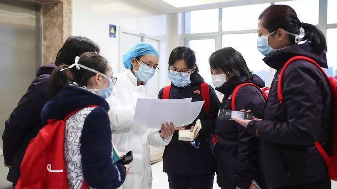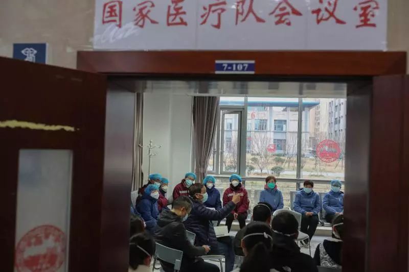 房間四周,分別坐著四支隊伍——當(dāng)前駐防的人民醫(yī)院,以及前來支援的三支醫(yī)療隊,他們分別來自陜西、山東、上海。這支上海醫(yī)療隊共136人,其中30名醫(yī)生、100名護士、6名行政人員,他們?nèi)縼碜杂趶?fù)旦大學(xué)附屬中山醫(yī)院。