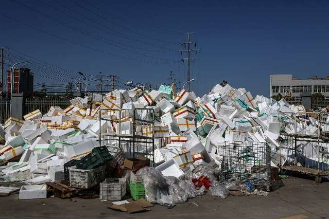 2月16日,湖北省武漢市,美菜武漢六倉(cāng)外堆放的包裝盒。中青報(bào)·中青網(wǎng)記者 趙迪攝